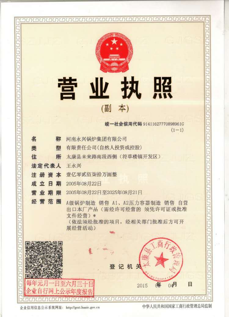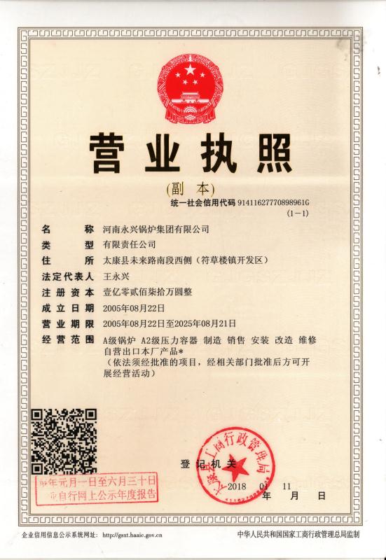 河南永興鍋爐集團有限公司 國家定點A級鍋爐制造企業(yè)
